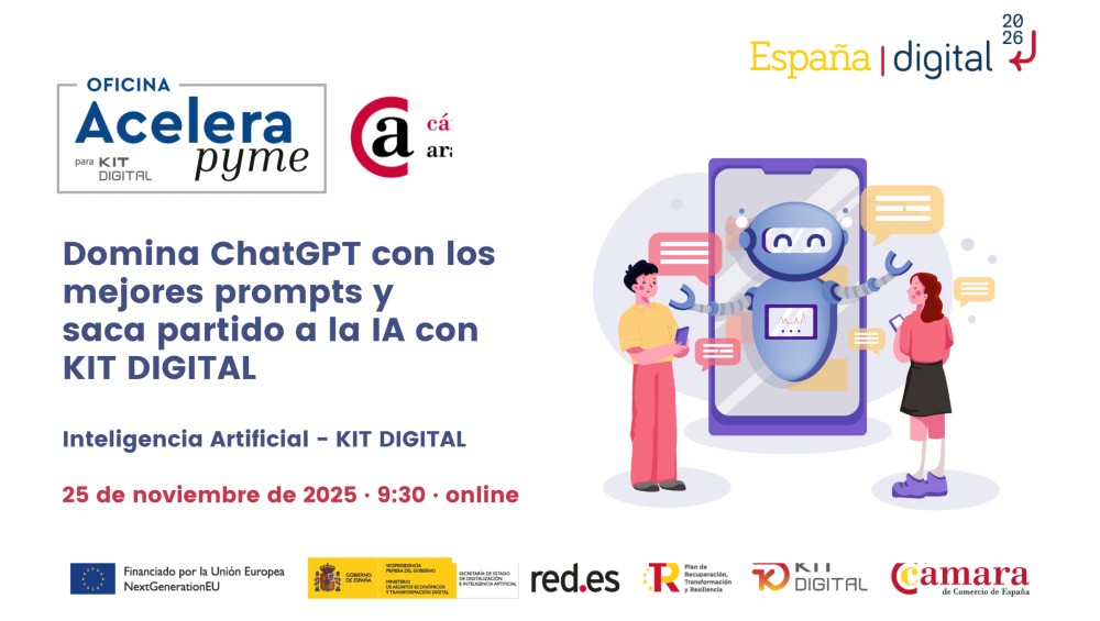 La Oficina Acelera Pyme de la Cámara de Álava te invita a esta jornada online gratuita «Domina ChatGpt con los mejores prompts y y saca el máximo partido con IA y KIT DIGITAL» que tendrá lugar el próximo 25 de noviembre de 2025 a las 9:30 en formato online.